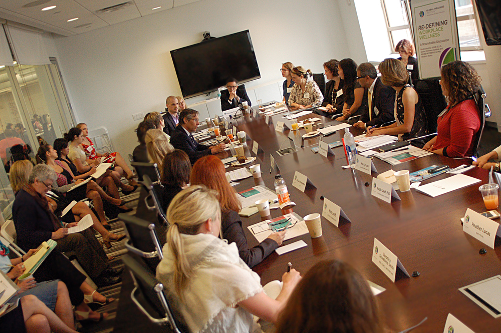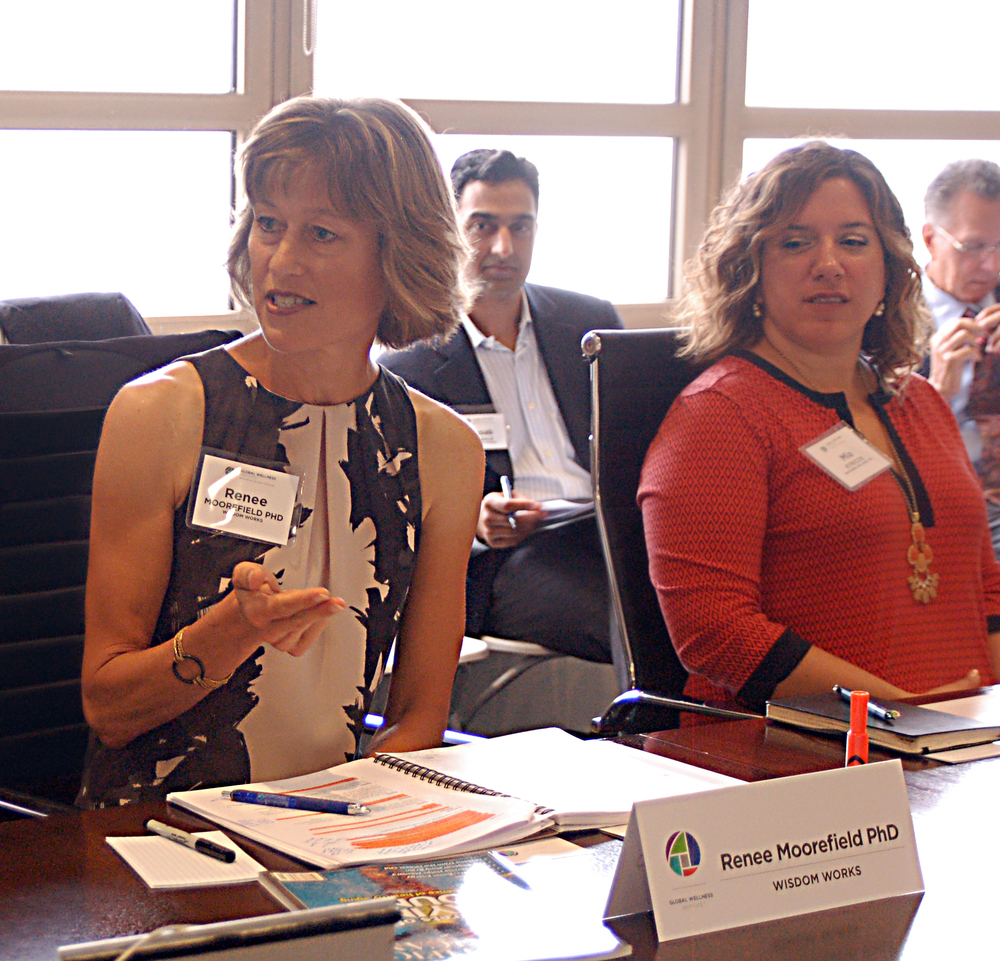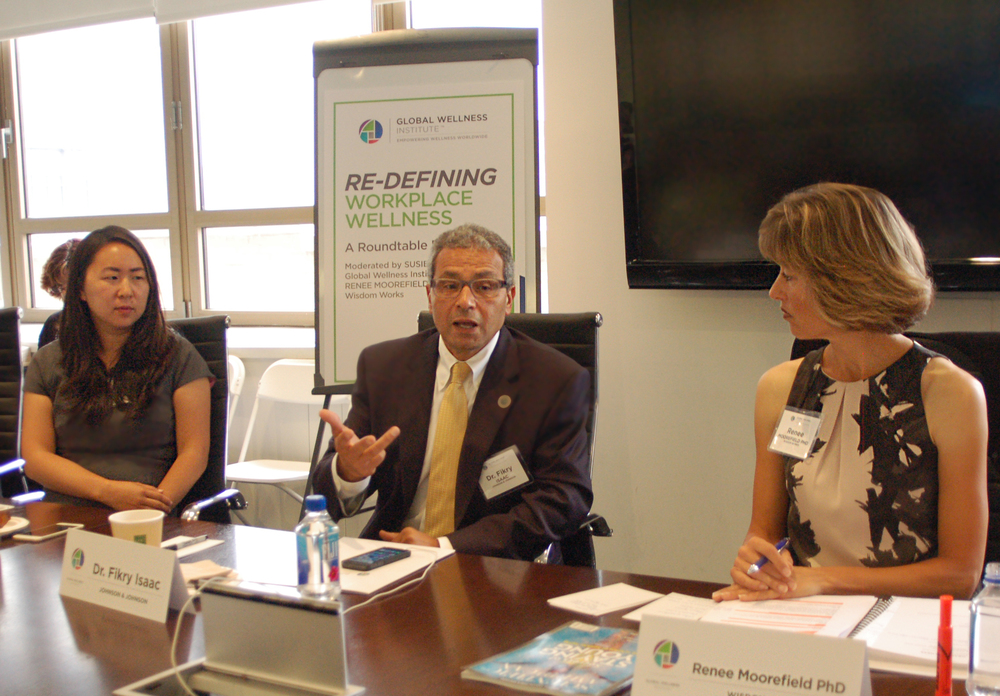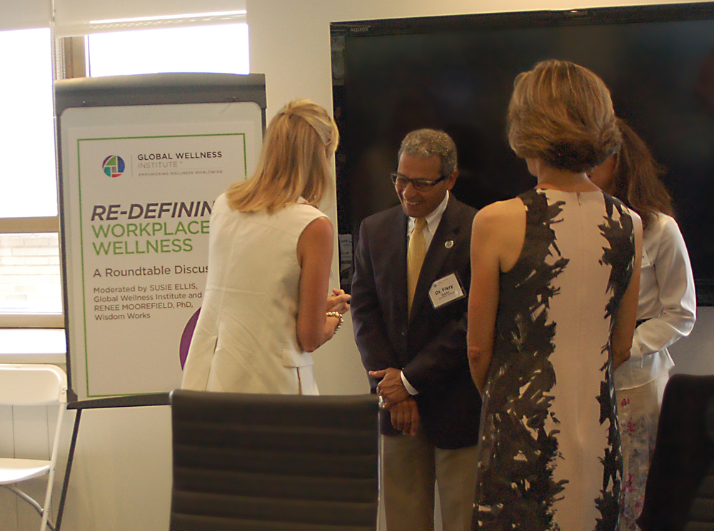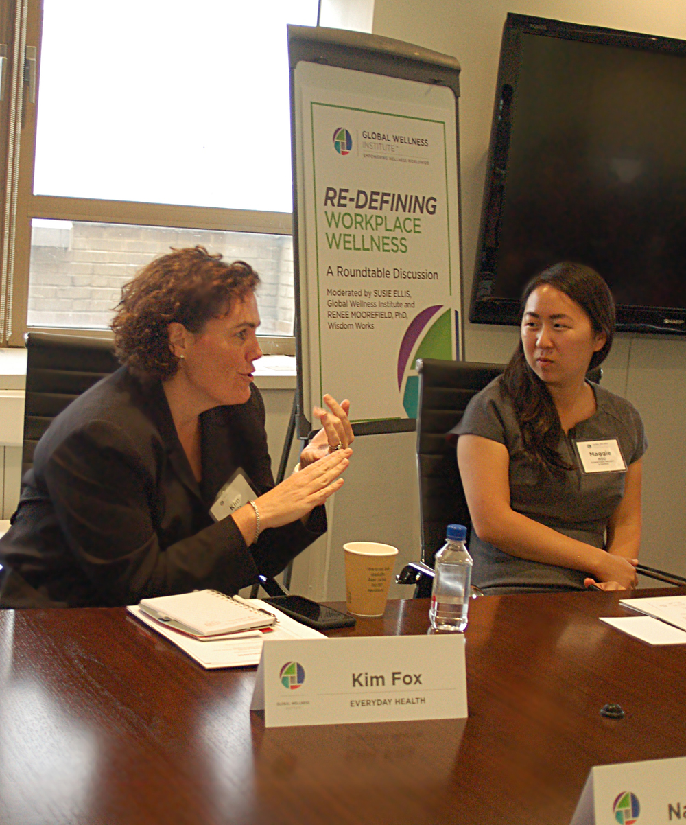 On July 15, the Global Wellness Institute held a roundtable discussion entitled “ReDefining Workplace Wellness” at the headquarters of Everyday Health in New York City. The discussion was moderated by Susie Ellis, GWI Chairman & CEO, and Renee Moorefield, PhD, CEO of Wisdom Works Group.