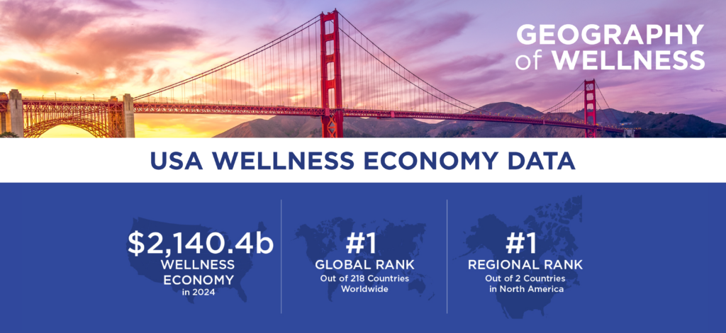 The United States is a global innovation leader in many wellness sectors, pioneering new products, services, and therapies in many spaces – from food and beverages, fitness programs, and mind-body treatments to longevity, recovery, sensory experiences, and diagnostic technologies that meet the emerging and diverse wellness needs of consumers. A growing number of Americans live and work in intentionally planned wellness real estate developments, which put human health and wellbeing at the center of their design and operations.