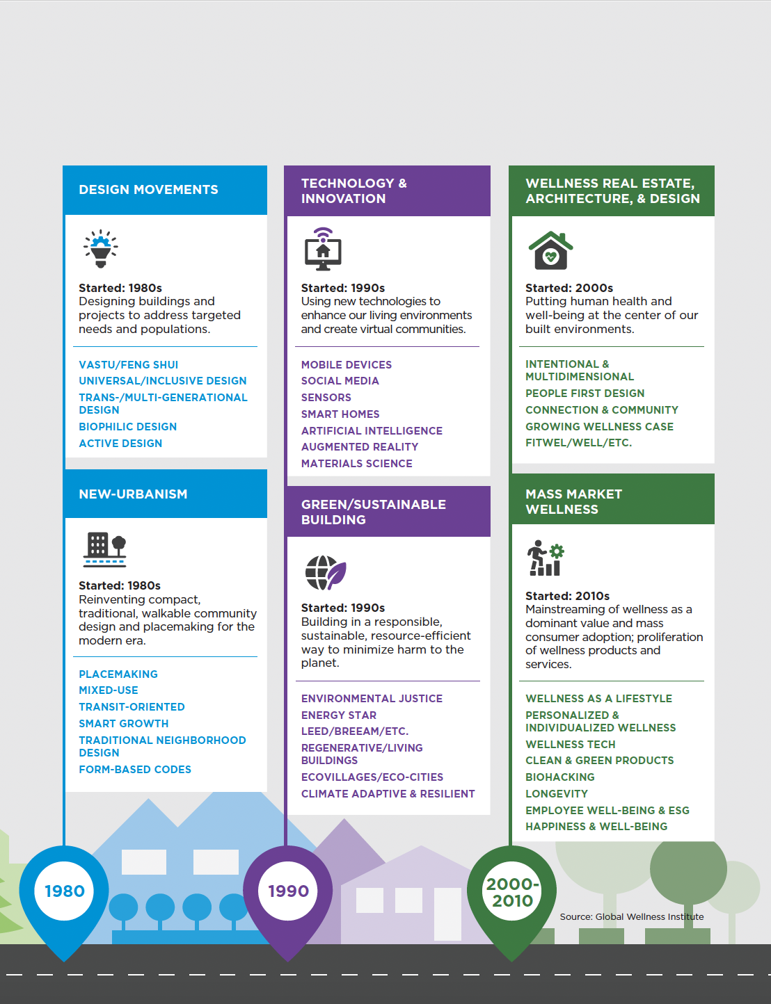 - Additional information and resources are available through two GWI initiatives: Wellness Communities & Real Estate Initiative and Wellness Architecture & Design Initiative.